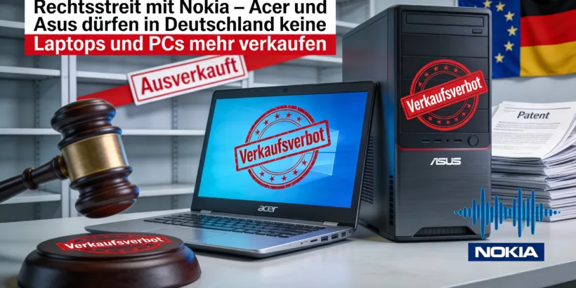 Nokia macht Ernst: Ein Urteil des Landgerichts München I zwingt Acer und Asus, ihren Verkauf von Laptops und Desktop-PCs in Deutschland vorerst einzustellen. Betroffen sind die offiziellen Online-Shops der beiden Hersteller – der Shop von Acer Deutschland ist seit dem Urteil bereits wegen „Wartungsarbeiten“ offline, was deutlich macht, wie kurzfristig die Konsequenzen einschlagen. Das Urteil erging bereits am 22. Januar 2026, wurde aber erst jetzt durch Medienberichte breiter bekannt.