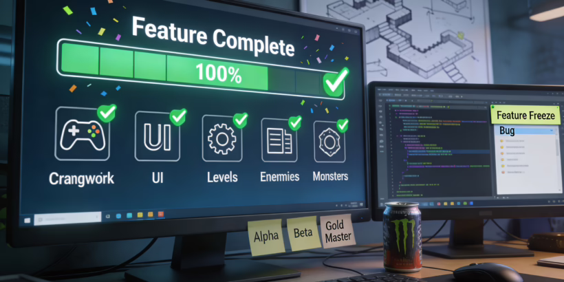 „Feature complete“ ist der Moment, in dem aus einer Baustelle ein Rohbau wird. Alle Räume sind da, aber es ist noch nicht bewohnbar. In der Spieleentwicklung markiert es den Übergang von „Dinge erschaffen“ zu „Dinge perfektionieren“. Es ist ein wichtiger Meilenstein, der zeigt: Das Projekt ist real, die Vision ist umgesetzt.