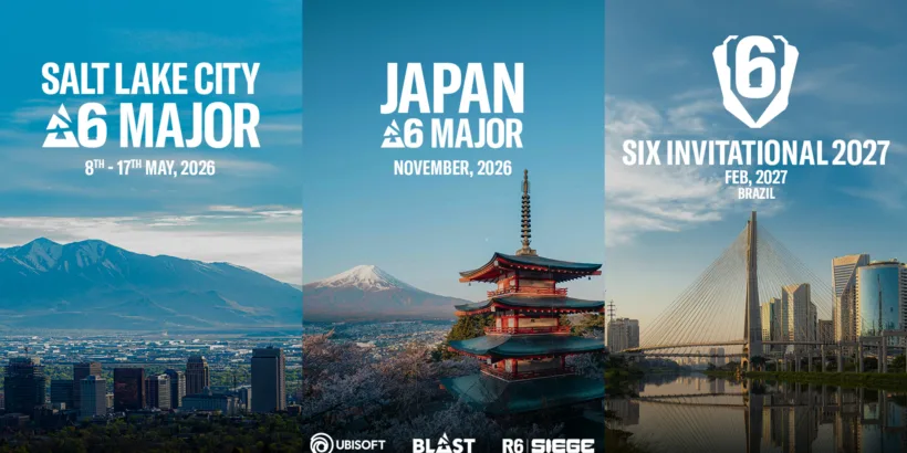 Die bestätigten Termine und Orte sind das BLAST Rainbow Six Major in Salt Lake City (8. bis 17. Mai 2026), das BLAST Rainbow Six Major in Japan (6. bis 15. November 2026) sowie das Six Invitational 2027 in Brasilien im Februar 2027.