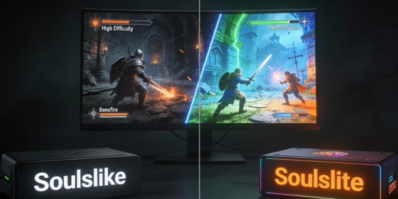 Soulslikes folgen FromSoftwares Design-Philosophie strikt und kompromisslos – brutal schwer, ohne Schwierigkeitseinstellungen, mit minimaler Erzählung und gnadenloser Bestrafung. Soulslites lassen sich davon inspirieren, machen das Erlebnis aber gezielt zugänglicher durch einfache Modi, traditionellere Geschichtenerzählung, mildere Konsequenzen bei Tod oder interessante Genre-Mischungen. Soulslites sind „Souls-inspiriert“, Soulslikes streben nach „Souls-Authentizität“.